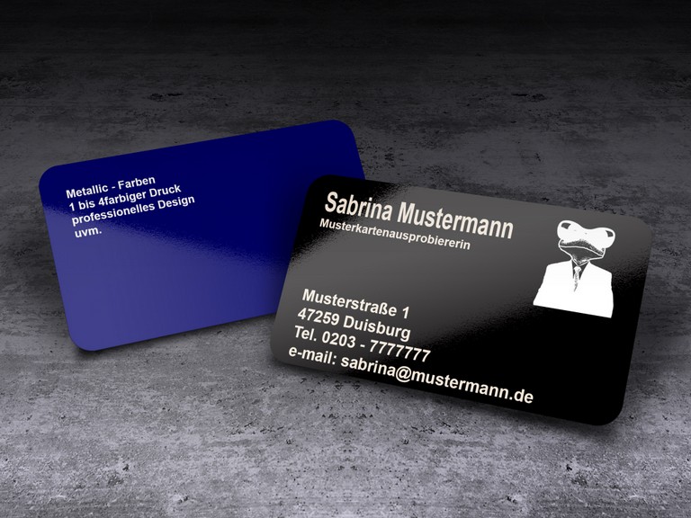 Karten in folgenden Farben erhältlich: weiß, weiß (metallic), schwarz (metallic), schwarz (matt). hellblau, dunkelblau (matallic), bronce (metallic), silber (metallic), dunkelgrün